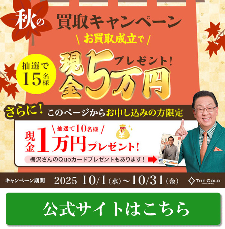 ザ・ゴールドに比べて、店舗の数が少ないので店頭買取りなどは見劣りしてしまう。ただ、宅配の査定においては専用の配送パックが自宅に届いて、それに梱包して回収してもらうだけ なので店舗の少なさを補えるくらいに便利。出張買取も可能なかぎり対応してもらえます。